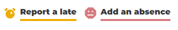 3. Fill out the form then submit using the + Report a late or + Add an absence button