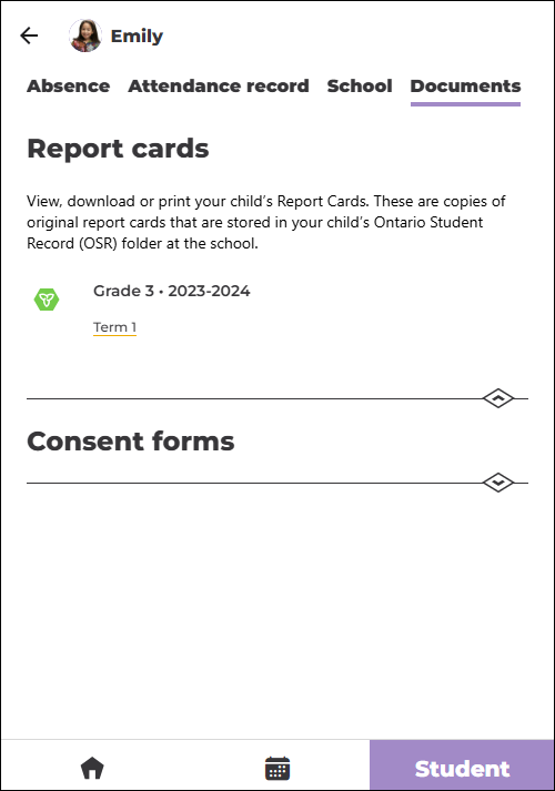 For new, or any available historical report cards, you can view them in the ‘Students’ section, under ‘Documents’. For information on how to view the Students section, please view this article: How do I see my students information?